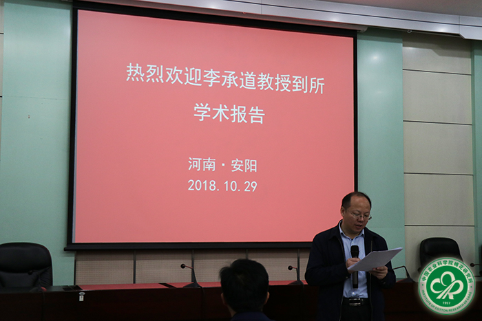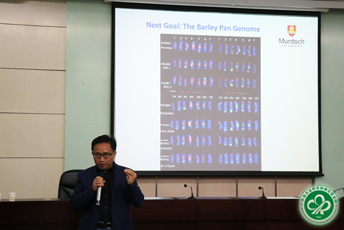 2018年10月29日上午,应我所长江育种课题组邀请,澳大利亚莫道克大学李承道教授为我所科研人员作了题为《Barley For Beer》的学术报告。科技管理处处长彭军主持报告会。郑州、海南、新疆、长江科研中心人员同步收看报告实况。