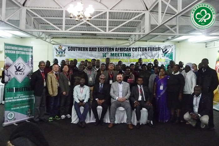 第十四届非洲东南地区棉花研讨会由津巴布韦作物研究所主持,会议主题是“全球协作,共同努力,提高非洲棉花产量(GLOBAL BEST PRACTICES FOR COTTON YIELD ENHANCEMENT IN AFRICA)”,来自津巴布韦、南非、美国、肯尼亚、印度、中国等20多个国家和地区的87位代表参加会议。会上,与会代表围绕棉花生产状况、棉花生理生化、抗旱耐盐、耐病机理、间作与轮作、分子育种等领域广泛交流了棉花生命科学研究的主要进展,并就非洲各国棉花生产产量比较低、品质参差不齐、自然逆境问题突出等重要问题进行了交流研讨。此外,会议开展了转基因抗虫棉的种子纯度鉴定培训,并组织参观了津巴布韦奇诺伊市棉花试验地、LUMUS棉花加工厂、津巴布韦奇诺伊理工大学(Chinhoyi university of technology of Zimbabwe),使与会代表了解了当地的棉花科研、生产、加工等情况以及该国棉花收获后转运、轧花、去杂、清梳、打包、外运等流程。