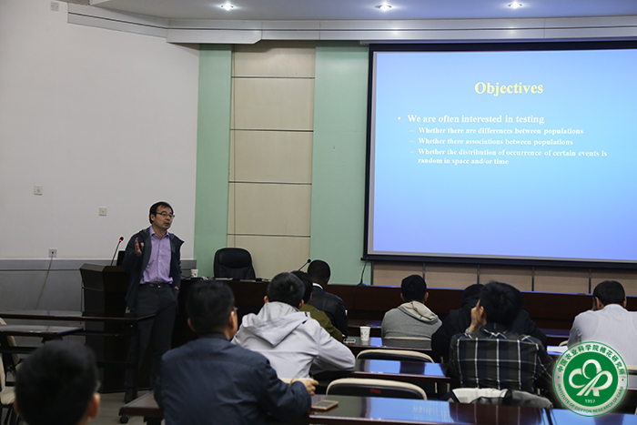Resampling techniques in data analysis: permutation, randomisation, bootstrapping”的学术报告,郑州和海南科研中心工作人员在分会场同步收看。他详细介绍了实验设计和常用统计分析方法原理,并强调除了正确的数据统计分析外,恰当的实验设计也很重要,举例说明了实验设计中区组、随机化和重复的重要性,并就研究人员投稿被拒的主要原因进行了分析,对我所科研人员和研究生进行科研工作具有重要指导意义。