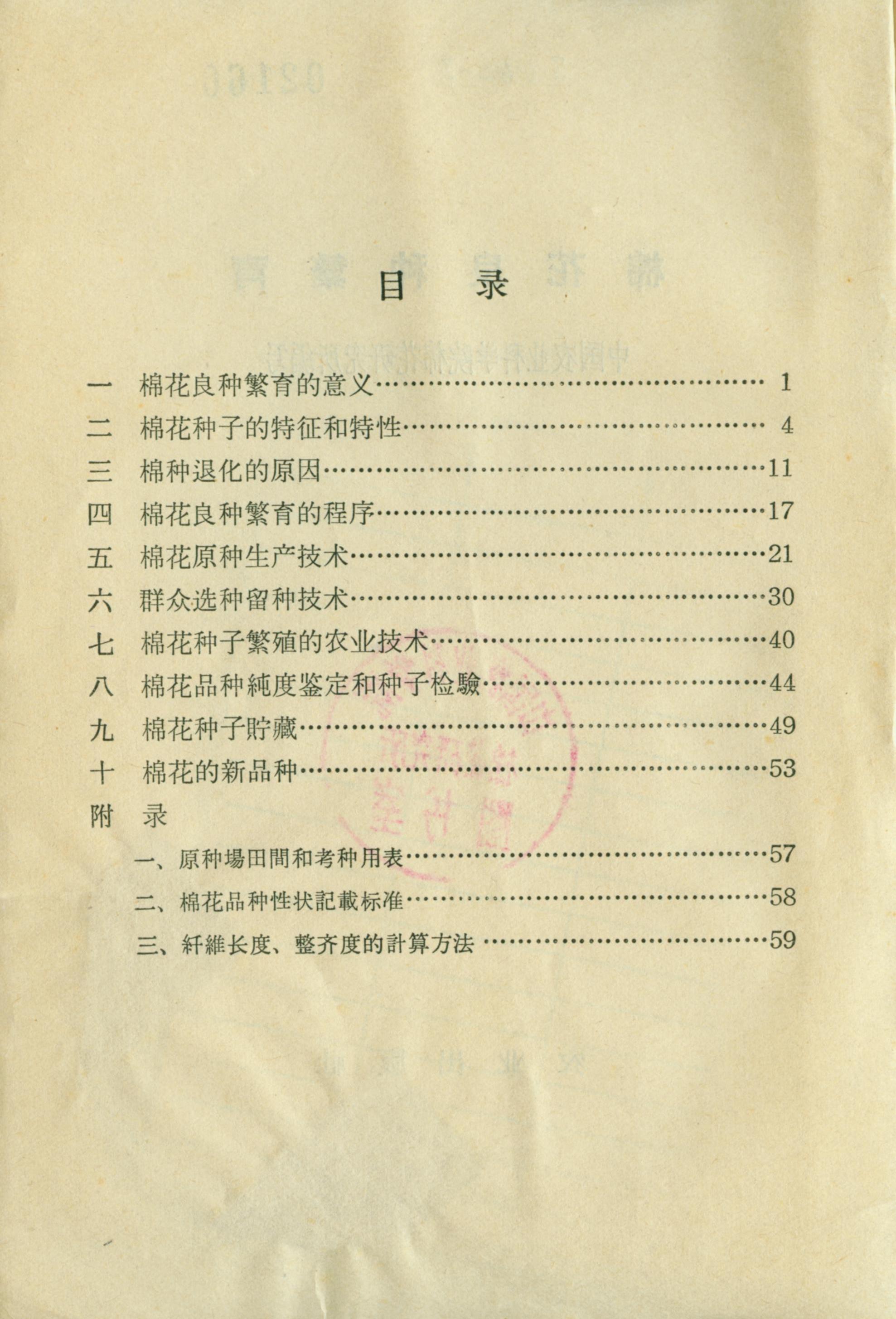 本书内容:1、棉花良种繁育的意义;2、棉花种子的特征和特性;3、棉种退化的原因;4、棉花良种繁育的程序;5、棉花原种生产技术;6、群众选种留种技术;7、棉花种子繁殖的农业技术;8、棉花品种纯度鉴定和种子检验;9、棉花种子贮藏;10、棉花的新品种。本书用词精炼,层次分明,对各种技术、程序的叙述极为细致,操作性和实用性极强。可以看出,这是一本面向基层技术人员和群众的极好读物。