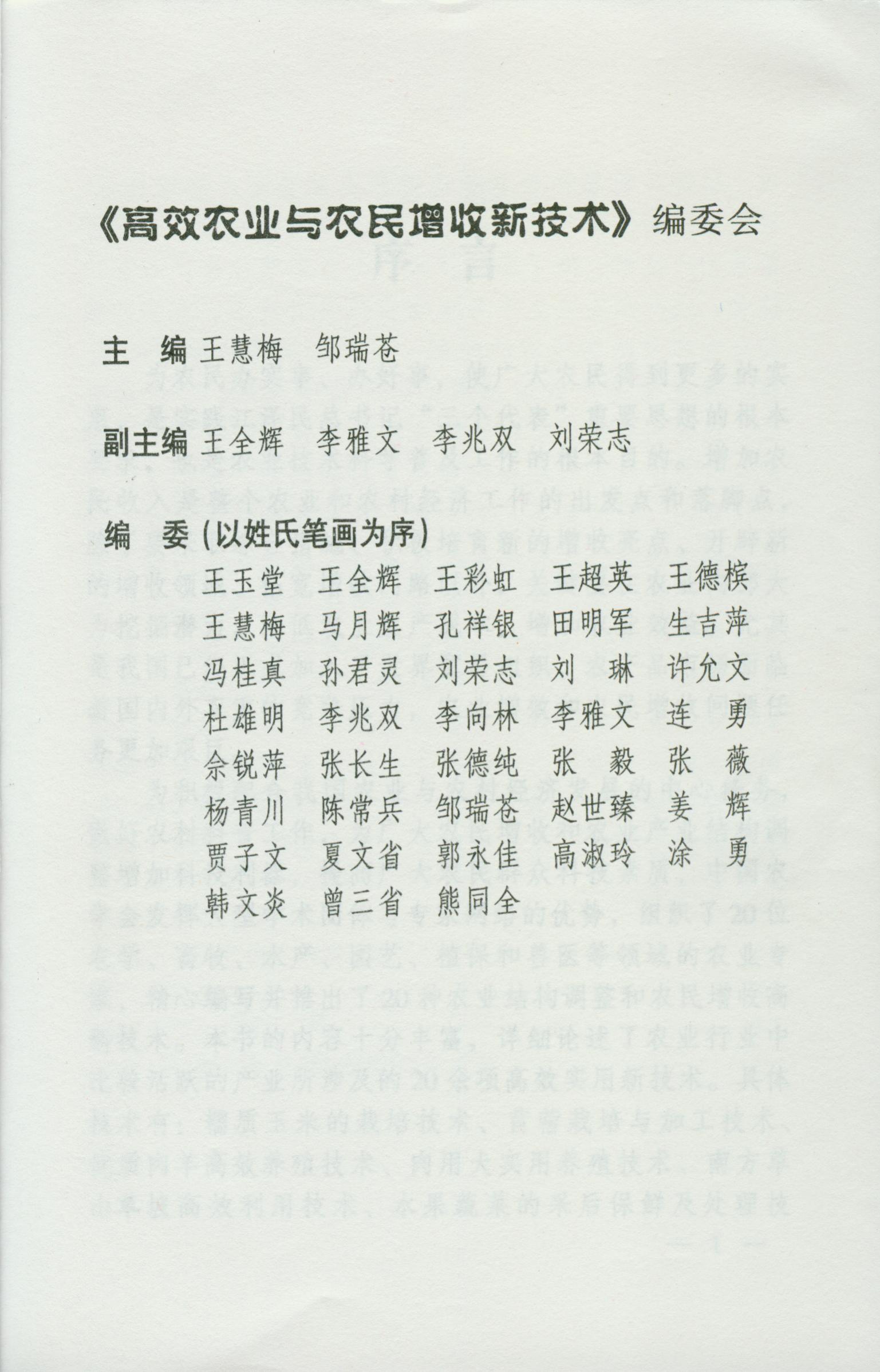 王慧梅、邹瑞苍主编,2002年9月科学普及出版社出版。编委会名录1页,序言2页,目录1页,正文261页,20万字。