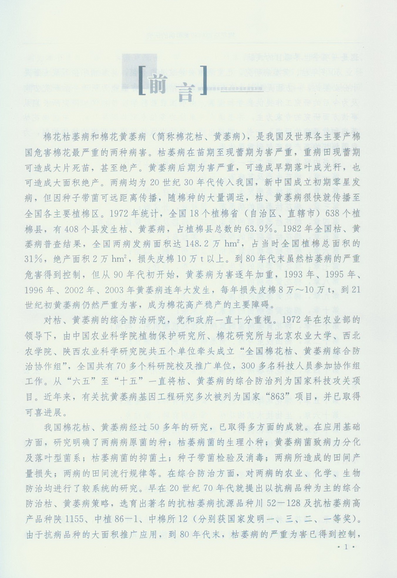 本书共21章,详细论述了棉花枯萎病和黄萎病的发生危害、流行规律、致病机理和棉花品种对枯、黄萎病的抗病性鉴定、抗病育种及其主要成就和经验,是对我国50余年来这项工作的成绩总结。