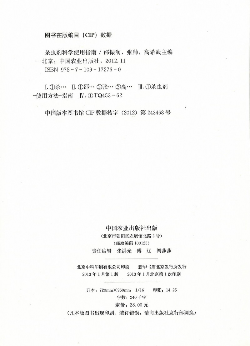 邵振润、张帅、高希武主编,2013年1月中国农业出版社出版。编写人员名录1页,前言2页,目录5页,正文182页,附录31页,24万字。