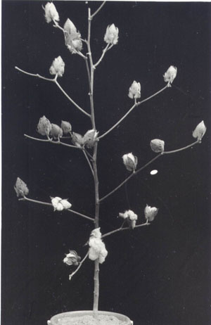 生育期131天,属中熟品种。株型较紧凑,叶片深绿,大小适中。铃卵圆形,铃重5.2克,衣分37%-39%。该品种突出的特点是出苗快,好拿苗,苗期生长壮实;吐絮畅而集中,僵瓣烂铃少,。