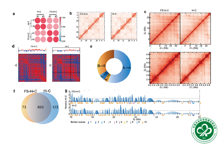李付广研究员团队基于“冷冻替代”原理,将高压冷冻替代技术与传统Hi-C技术相结合,开发出了“冷冻置换Hi-C”技术(Freeze-Substitution-Hi-C,FS-Hi-C)。该技术方法通过梯度升温的方式对样本染色质结构进行预交联固定,以最大程度地减少冷冻样本在升温过程中染色质高级结构的改变。该研究在动物(果蝇)和植物(棉花)上证实了FS-Hi-C对冷冻样本染色质三维结构的解析与传统新鲜样本Hi-C结果高度一致,FS-Hi-C还可显著提高植物Hi-C文库质量,大幅度降低了植物Hi-C成本。FS-Hi-C克服了传统Hi-C对新鲜样本要求的限制性,使Hi-C技术更灵活便捷。