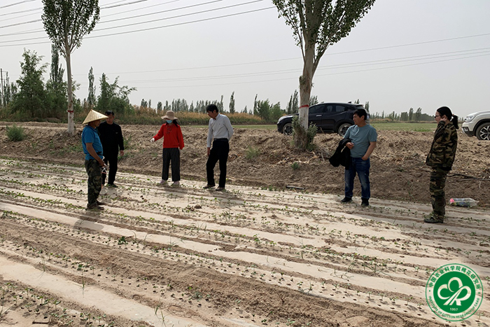 活动期间,中棉所专家团队一行对八团春灌、冬灌、夏灌水资源分配情况进行了实地调研,结合当地地下水位、土质等,分析了推广干播湿出的植棉模式的可行性,并对如何利用现有的水资源在盐碱化轻或沙性土壤性质的地块应用干播湿出技术进行了积极探索。