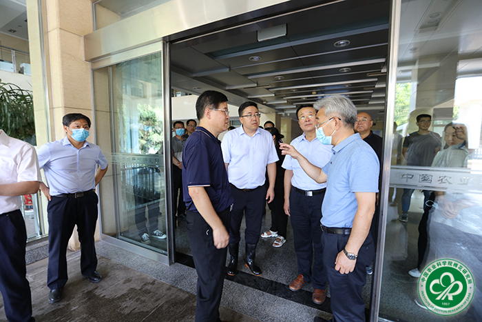 农业农村部国家首席兽医师(官)李金祥、种植业管理司司长潘文博、乡村产业发展司副司长刁新育、全国农业技术推广服务中心魏启文主任,以及中棉所党委副书记宋国立、副所长马雄风等陪同检查。