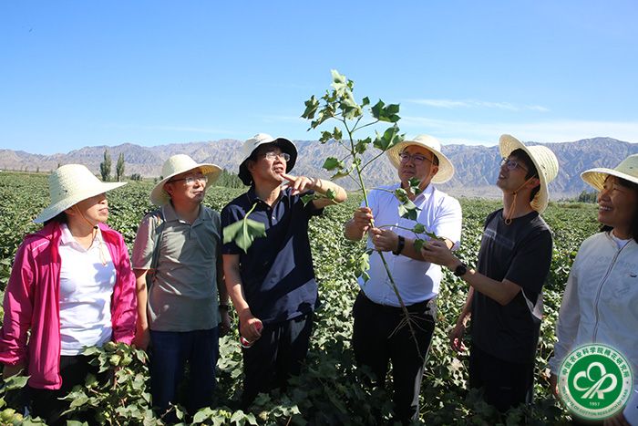 棉花产业专家团成员在田间查看棉花生长情况