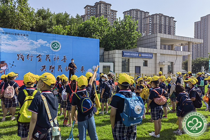 上午九点,集合完毕的小学生们雀跃有序地来到郑州所区一楼大厅,在吴亚杰博士的讲解和带动下,快速燃起对棉花和农业科学的好奇心,开启了一天的研学探索之旅。