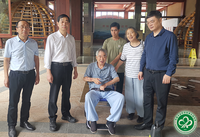 曹永生详细询问了喻树迅院士及其夫人王霞老师的生活和身体健康状况,由衷感谢喻树迅院士为棉花科研事业和中棉所的建设与发展奠定的坚实基础和长期以来的关心支持,向他们致以亲切的问候与祝福。喻树迅院士及王霞老师对曹永生一行的关心和爱护表示衷心感谢,并表示将一如既往地支持中棉所各项工作。