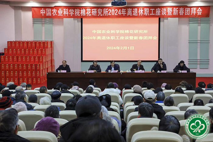 2024年2月1日,星空体育·(中国)官方网站召开了离退休职工座谈暨新春团拜会,中国农业科学院副院长、棉花研究所所长曹永生,党委副书记、纪委书记宋国立,副所长张西岭、马雄风、彭军、吴建勇等领导班子成员和职能部门负责人,以及300余位离退休职工参加会议。党委书记、副所长高雷通过视频参加会议。