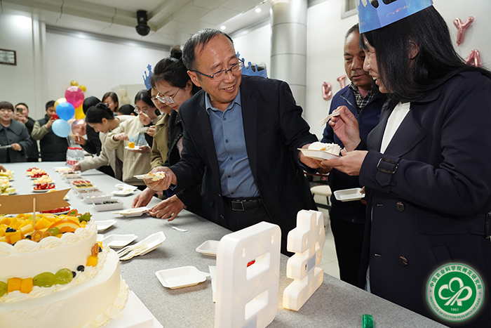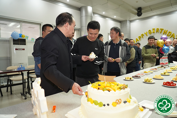 活动现场布置得温馨浪漫,五彩斑斓的气球、精美的蛋糕和丰富的美食让人们感受到了浓浓的生日氛围。大家齐聚一堂,共同为过生日的职工们庆祝。党委副书记、纪委书记宋国立和副所长张西岭为寿星们送上了精美的生日礼物和诚挚的祝福,感谢大家一直以来为中棉所的发展付出的辛勤汗水,希望通过这场生日会,让大家感受到研究所的关心与关爱,在新一届领导班子的带领下,珍惜当下,砥砺前行,积极投身科研,不断奋进,吹响中棉所改革的号角,踏上新征程,开创新局面,再创新辉煌。随后,寿星代表发表了感言,感恩中棉大家庭,感恩与大家一路同行,在今后的工作中要进一步传承弘扬“艰苦奋斗,甘于奉献,勤于实践,勇于创新”的“中棉所精神”,为推动棉花产业高质量发展作出新贡献。在生日歌声中,寿星们一同许下愿望,吹灭蜡烛,结束了美好的生日庆典。