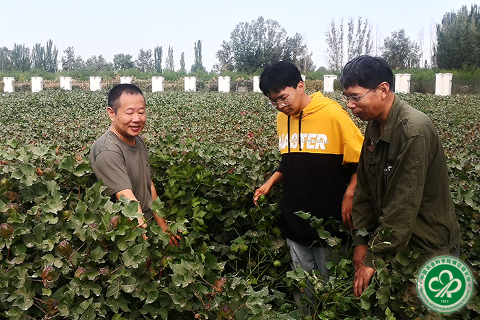 同一天,在距离胡杨河市1300公里的天山南麓第一师阿拉尔市,中棉所阿拉尔综合试验站的640亩棉田里,分子育种课题组的袁有禄研究员也正忙着棉花选种工作,他说:“我是8月1日到达新疆,先后在昌吉、图木舒克等地调研棉花长势,9月6日到阿拉尔综合试验站。”土壤肥料课题组的董合林研究员与课题成员李鹏程和研究生骆磊等人,正在试验地里调查棉花吐絮情况:“我们是7月26日来到新疆,先后在8团、10团、12团等地棉区调研棉花干播湿出的产品和技术示范情况,前几天到的试验站。”相邻的另一块试验田里,棉花智慧栽培团队成员马云珍正在查看数据采集设备,“马云珍从播种至今没有离开过试验站,为团队在新疆开展智慧栽培的理论研究和技术推广示范作出了巨大贡献,为完成科研项目提供了重要保证。”团队首席李亚兵研究员介绍到。