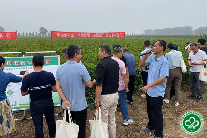 会上,江苏省农业科学院植物保护研究所、北京市农林科学院、濮阳市农林科学院等单位5位从事辣椒植保、育种、栽培、生产等方面的专家组对安阳县后白璧村40亩示范田和30亩对照田进行了现场鉴定,确认“中棉菌乐土”防病效果达81.2 %;单株结果数增加11.9个,提高24.9%;单株成熟果数增加19个,提高64.2%。专家组一致认为,该微生物菌剂对辣椒具有较好的防病增产效果,且在促进早熟、提高前期产量方面效果明显。