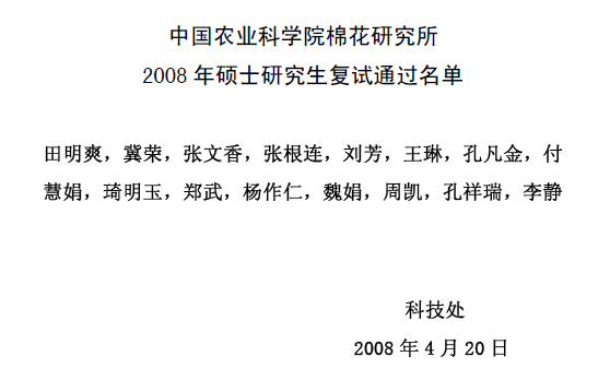 2008年度硕士研究生复试通过名单