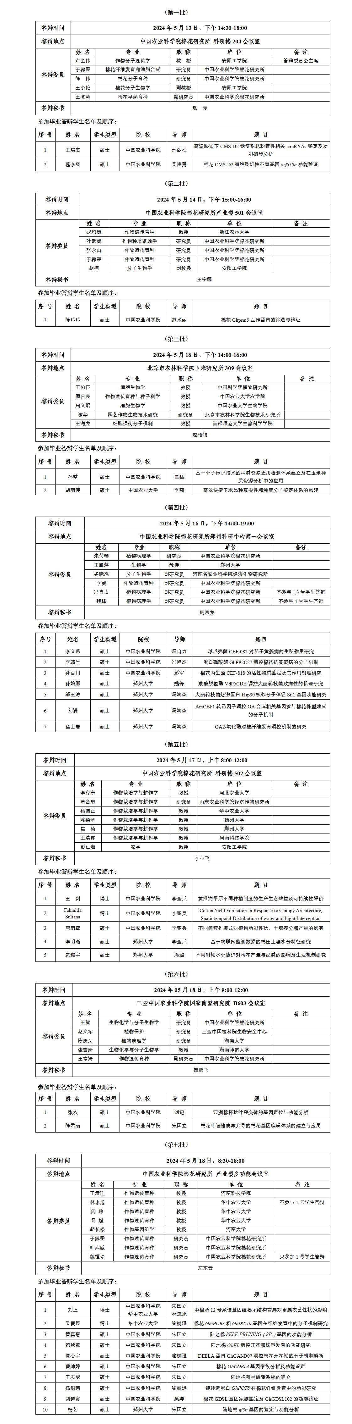 根据《中国农业科学院学位授予工作实施细则》和研究生院论文答辩工作安排,经研究决定,于2024年5月13日开始进行我所2024年研究生学位论文答辩,具体安排如下: