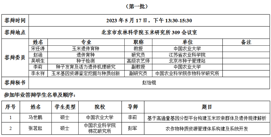 根据《中国农业科学院学位授予工作实施细则》和研究生院论文答辩工作安排,经研究决定,于2023年5月25日进行我所2023年研究生学位论文答辩,具体安排如下: