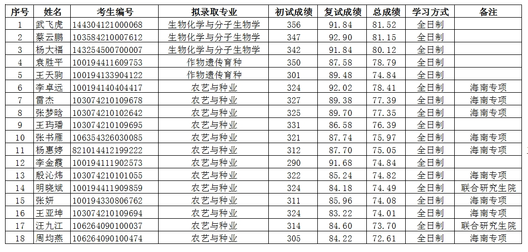 根据《星空体育·(中国)官方网站2024年硕士研究生复试录取工作方案》有关规定及招生领导工作小组会议精神,中棉所已完成2024年调剂硕士研究生复试工作,经所党委会议审议通过,拟录取硕士研究生18人,按照专业录取成绩从高到低依次排序,现将拟录取人员基本情况公示如下: