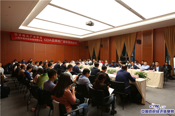 创品牌是国棉联盟的重要建设工作。为推广、培育CCIA品牌,10月15日,国家棉花产业联盟与上海永澳纺织科技有限公司携手举办CCIA品牌成人服装类产品授权签约仪式。目前,永澳公司高品质纯棉面料和高品质棉制服装已标有“CCIA”吊牌。