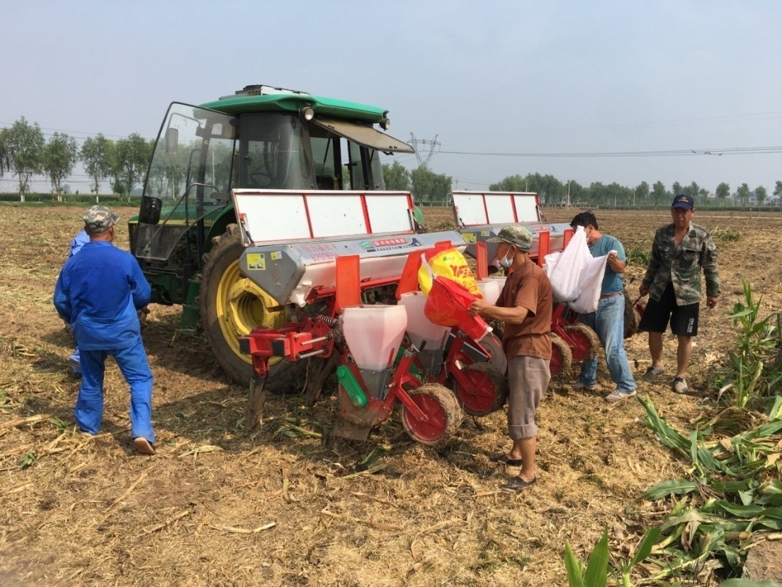 棉花所基地附近的瓦店乡东路村受灾严重,急需大型农机开展复耕复种工作。专家组了解情况后,主动联系政府部门,为东路村免费提供农机作业、种子和技术服务。8月7日一大早,专家组带领研究所机务队一行9人携带秸秆粉碎机、犁地机、耙地机、撒肥机开展复耕作业。为了尽快恢复生产,机务队克服大雨和田地泥泞等困难,采用机械和人工相结合的方式,用最短的时间完成粉碎秸秆、整地、播种等任务。经过连续奋战,截止8月14日,机务队共出动人员80人次,大型机械40台次,修复农田230亩。目前,补种的大豆,绿豆、玉米均已出苗,长势良好。