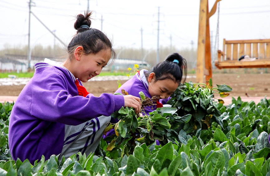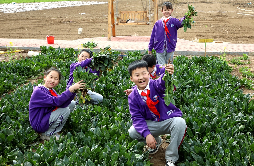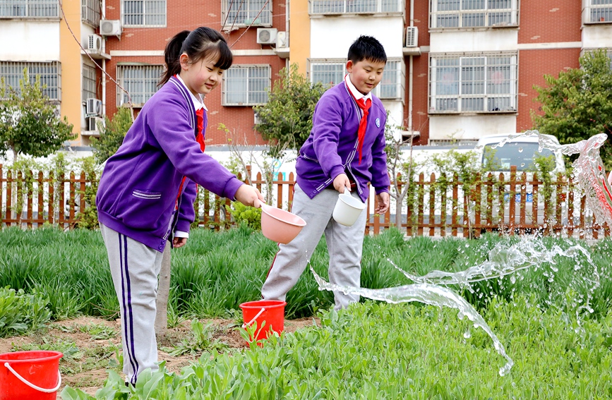 河南省安阳市文峰区银杏小学南校,学生在农场进行社会实践活动。麻翛然摄