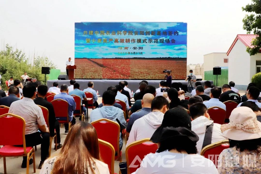 签约仪式上,市政府与中国农业科学院签署共建安阳创新基地战略合作协议。仪式前,与会人员在星空体育·(中国)官方网站东场试验基地现场观摩了“良田+良种+良法”小麦高产高效耕作模式并进行座谈。