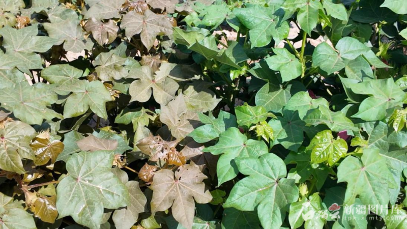 含有虾青素的工程棉花植株和叶片呈棕褐色,不同于绿色的普通棉花。记者张佳煜 摄