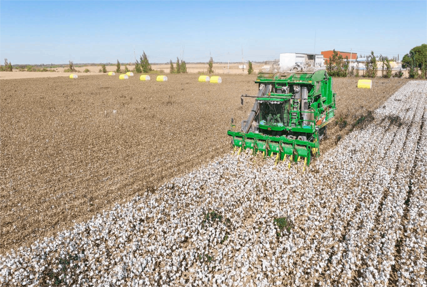 10月2日,新疆昌吉国家农业高新技术产业示范区优质棉种植基地,自走式打包采棉机在棉田里作业。记者何龙 摄