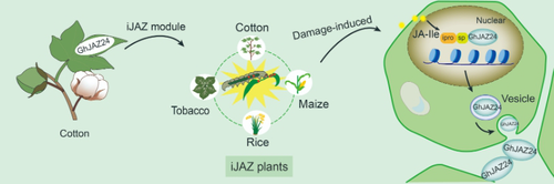 该研究在棉花中鉴定到一个天然的新型杀虫蛋白,对棉铃虫和草地贪夜蛾均表现出显著抗虫性,且该蛋白的杀虫机制与苏云金芽孢杆菌蛋白的杀虫机制完全不同,两种蛋白具有良好互补性,其杀虫谱更广。该研究创制了过表达该杀虫蛋白的棉花、玉米、水稻、烟草新种质,展现出了对草地贪夜蛾、棉铃虫、玉米螟、稻纵卷叶螟、小菜蛾、烟草天蛾、大蜡螟、甜菜夜蛾、二化螟、斜纹夜蛾等在内的鳞翅目害虫的高抗性。