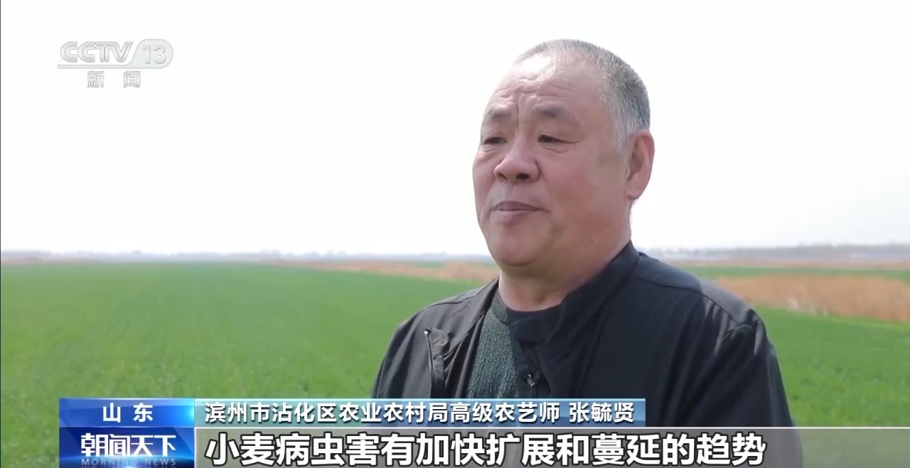 滨州市沾化区农业农村局高级农艺师 张毓贤:随着气温大幅度回暖,小麦病虫害有加快扩展和蔓延的趋势。今年我们争取资金384万元,全力防治病虫害。