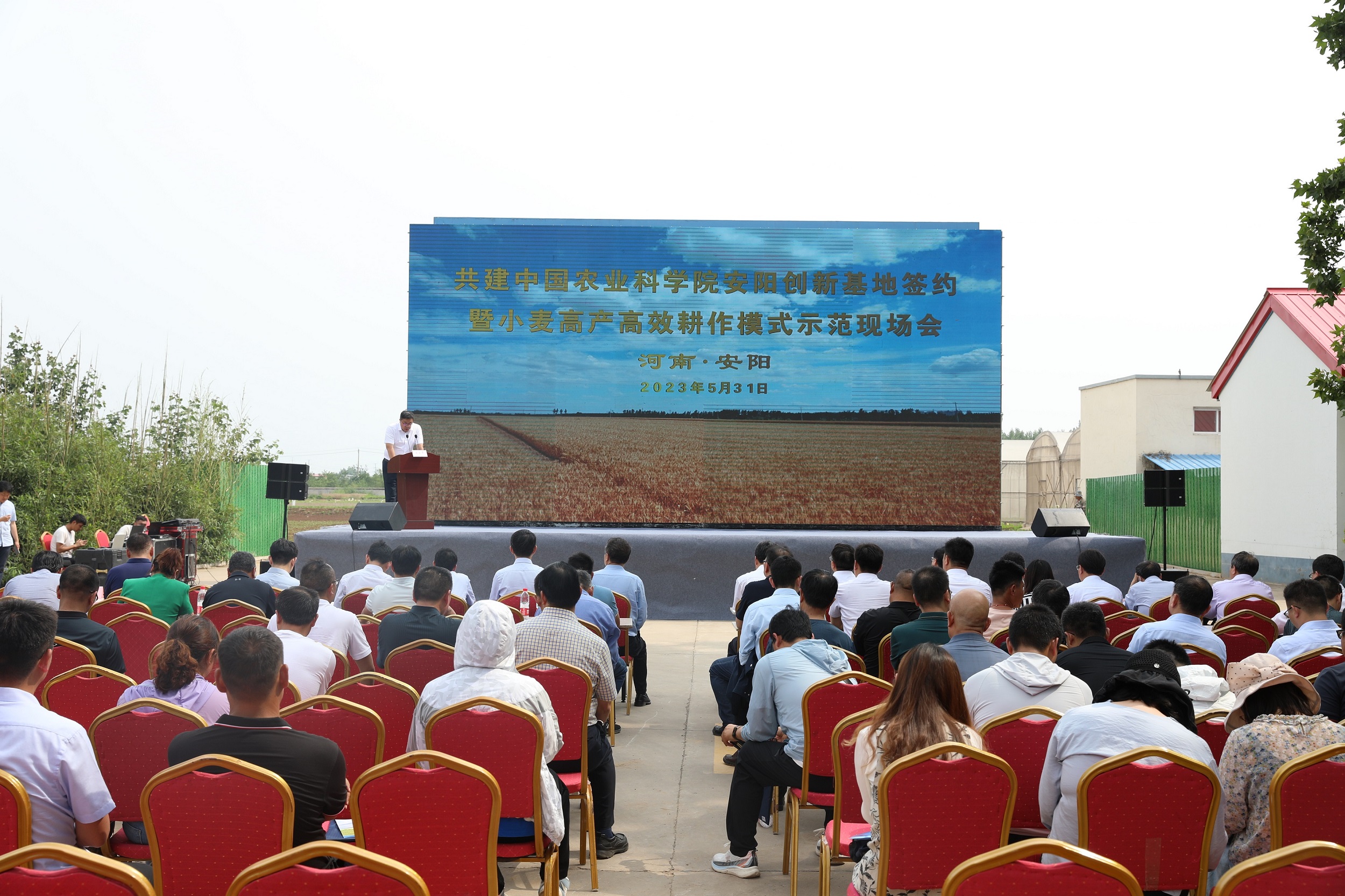 5月31日,由中国农业科学院、安阳市政府共同举办的共建中国农业科学院安阳创新基地签约暨小麦高产高效耕作模式示范现场会在河南安阳召开。会议以中国农科院安阳创新基地建设和“良种+良田+良法”推动小麦高产高效为主题,采取“现场观摩+座谈”形式召开,旨在通过推动农业设施化、机械化、绿色化和数字化,围绕中国农科院“十大使命”,响应“强种”“沃田”“增粮”重大科技行动,发挥好国家战略科技力量作用,推进农业科技高水平自立自强,以科技赋能粮食生产安全等。