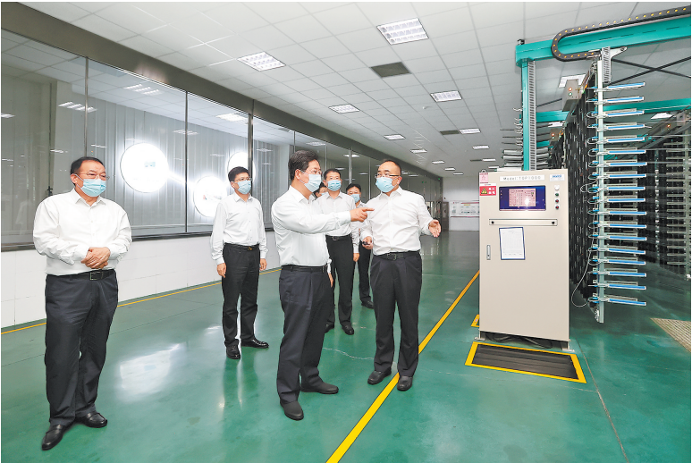 8月2日,省委书记楼阳生到河南光远新材料股份有限公司,调研产业转型升级、科技创新等情况。(董亮 蔡迅翔 摄)