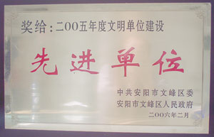 我所荣获2005年度文蜂区文明建设先进单位
