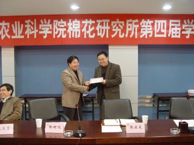 所长兼党委书记喻树迅简要介绍我所科技进展后,党委副书记兼副所长侯志勇宣读我所关于第四届学术委员会组成的文件:主任委员喻树迅,副主任委员王坤波、李付广,委员:侯志勇、毛树春、杜雄明、杨伟华、杨付新、杨兆生、郭香墨、袁有禄、刘全义、崔金杰、魏守军、邢朝柱、赵新华、汤叔红、张启发(华中农大教授、中科院院士)、朱玉贤(北京大学教授)、张金发(美国新墨西哥大学教授)、薛勇彪(中科院遗传所研究员)、郭三堆(我院生物技术所研究员)、张献龙(华中农大教授)、张天真(南京农大教授)、马峙英(河北农大教授)、祝水金(浙江大学教授),秘书由赵新华和汤叔红兼任。文件宣读之后,所长喻树迅向到会的所外专家分别颁发了聘书。