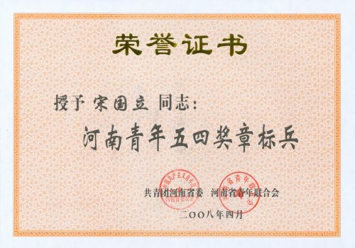 我所宋国立博士获河南青年“五四”奖章标兵称号