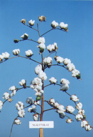 我所育种室主任郭香墨研究员等人主持完成的“高效广适双价转基因抗虫棉中棉所41”,近日获得2009年国家科技进步二等奖。中棉所41是我所育成的第一个国审双价转基因抗虫棉品种,将我国自主知识产权的Bt+CpTI双价基因,采用花粉管通道法转入常规棉品种中育成,高产广适,产量比同类品种增产11.2%-14.1%,比美棉33B增产22%-25%,2002年审定以来一直是黄河流域主推品种,占陕西、山西种植面积的50%以上;抗逆性强,抗棉铃虫性强而持久,减少棉铃虫防治70%-80%,棉花生长中后期抗虫性显著优于单价抗虫棉,抗枯萎病,耐黄萎病,耐干旱、盐碱;纤维品质优良,上半部平均长度29.7毫米,比强度30.6cN/特克斯,麦克隆值4.6;种植面积大,效益显著,2002年审定以来累计种植3691.1万亩,累计增收节支65.48亿元,新增社会经济效益45.26亿元。该品种先后获得陕西省科技进步一等奖和农业部神农中华农业科技二等奖,2009年荣获国家科技进步二等奖,专家认为,“该品种的育成是我国转基因抗虫棉育种的重大突破”。