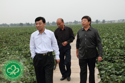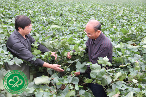 9月19日下午,副书记、副所长侯志勇,副所长刘金海在中棉种业副总经理黄殿成的陪同下,参观考察了三系杂交棉示范田。侯书记、刘所长认真观察示范田的长势情况,仔细调查三系品种的果枝数、结铃数,并考察了附近的普通棉花品种。大家一致认为,培育成功的三系杂交棉品种长势强,不早衰,铃大,结铃性强,表现较好。