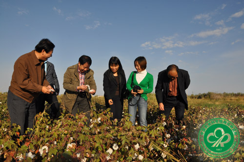 2010年9月27日至9月30日,在内蒙古农牧业科学院路战远副院长等人的陪同下,我所所长、国家棉花产业体系首席科学家喻树迅研究员和我所遗传育种研究室主任范术丽研究员一行对内蒙古阿拉善地区棉花高产创建示范田进行了实地考察。该示范田种植品种主要为早熟棉品种中棉所50和新陆早26,调查结果显示该示范田棉花种植密度为每亩11000株左右,单株铃数平均7~8个,单铃重平均5g左右,预计能达到百亩约700斤籽棉/亩的产量水平。