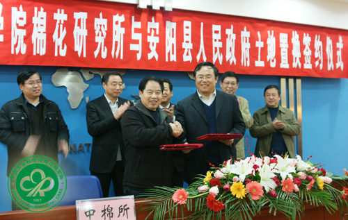 12月9日下午,我所与安阳县人民政府土地转换签约仪式在安阳市人民政府党政综合楼会议室隆重举行。安阳市人民政府秘书长师华山、副秘书长杨旺学,我所所长喻树迅、副所长李付广、李建萍,中共安阳县委书记张保香、副书记、县长徐慧前、副县长陈杰、孙国军及相关负责人等出席,签约仪式由市人民政府副秘书长杨旺学主持。