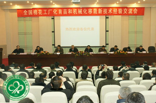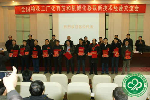12月26日,“全国棉花工厂化育苗和机械化移栽新技术”经验交流表彰会在我所举行。来自湘、鄂、皖、赣、苏、冀、鲁、豫、津、晋、秦等产棉省市农业部门、推广机构、公司、大户和专家学者等150多位代表参加了会议。会议主要交流了新技术推广应用和基质综合种苗基地的经验,总结了应用新技术创棉花高产超高产、两熟北移和棉麦双高产技术,并对2009-2010年棉花“两化”推广应用取得突出成效的单位、基地和植棉大户代表进行了表彰。