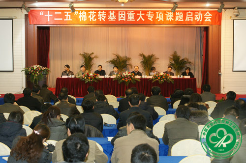 参加本次启动会的代表包括“抗虫及转基因杂交棉花新品种培育”、“抗病及转基因早熟棉花新品种培育”、“转基因优质纤维棉花新品种培育”及“转基因棉花环境安全评价技术”四个课题的一、二级任务单位负责人。会议通报了“十二五”转基因重大专项的预算、立项及任务书签订情况。喻树迅院士对“十二五”棉花转基因专项的研发方向、安排部署及财务管理等情况做出重要指示。
