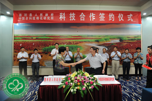 7月20日上午,我所与垦利县人民政府合作建设黄河三角洲高效生态农业示范区棉花产业科技示范园签约仪式在垦利县举行。刘金海副所长和马俊副县长代表双方在协议书上签字。