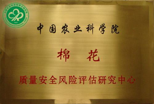 我所被授予“中国农业科学院棉花质量安全风险评估研究中心”