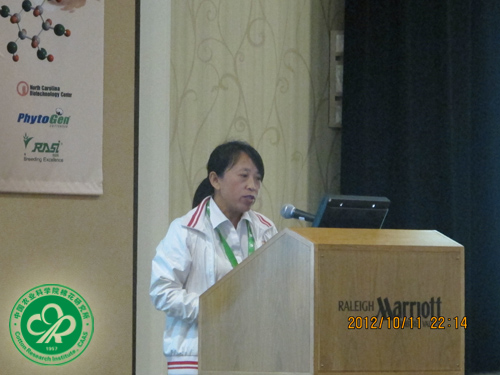 会上,受喻树迅院士委托叶武威博士作了The genome of a diploid cotton Gossypium raimondii(二倍体雷蒙德氏棉的基因组草图)的大会报告,宋美珍博士作了Study on molecular mechanism of a new virescent mutant (vsp) short season cotton (Gossypium hirsutum L.)(短季棉芽黄突变体的分子机制研究)的分组报告,袁有禄博士和王红梅博士也作了简短发言。他们的报告受到来自30多个国家的182名代表的普遍关注,特别是我所在二倍体雷蒙德氏棉基因组测序方面的进展,产生了广泛的国际影响。