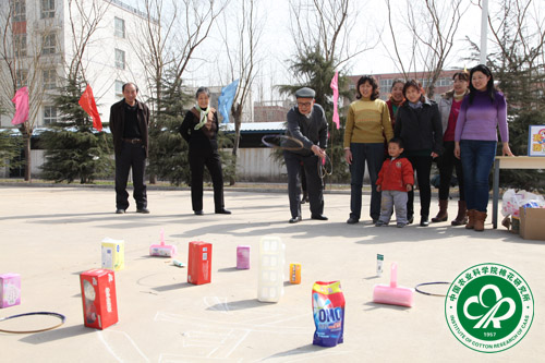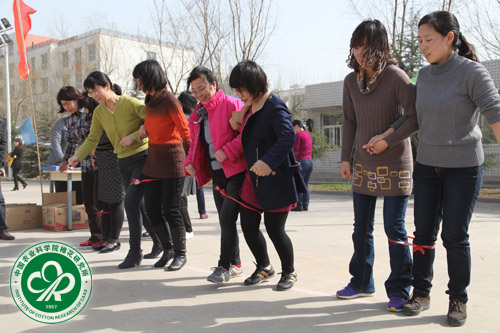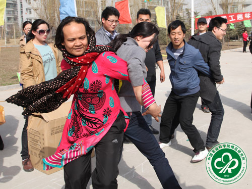3月7日下午,风和日丽,春暖花开。我所灯光球场人声鼎沸,彩旗飘飘。随着党委副书记宋国立的一声锣响,“和谐中棉,畅享春天 2013年春季职工趣味运动会”开始了。 在三八妇女节到来之际,为展现我所妇女及广大职工团结友爱、健康向上、充满活力的精神面貌,增强凝聚力,培养团队合作精神,所党办、工会女工委、文明办联合举办了这场趣味运动会。 在运动会中,约300人参加了两人三足绑腿走、仙人指路过路障、两人一组踩气球、双人相背夹球走等多个项目。形式多样、丰富有趣的活动给大家带来了节日的欢乐。(摄影:张聚明)