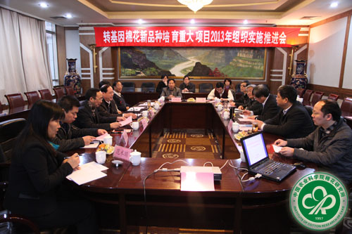 3月12日,转基因棉花新品种培育重大项目2013年组织实施推进会在安阳召开。转基因专项棉花项目执行专家组组长喻树迅院士、副组长朱玉贤院士、专家组成员及5个重大课题负责人共计15人参加了此次会议。我所副所长王坤波、副书记宋国立出席会议并致欢迎辞。