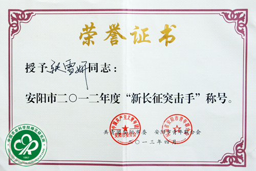 日前,从安阳市纪念五四运动94周年青春会上传来喜讯,棉花基因工程研究创新团队获“安阳市新长征突击队标兵”荣誉称号,棉花转基因研究与应用课题组张雪妍获“安阳市新长征突击手”荣誉称号,棉花杂种优势利用课题组唐会妮获“安阳市优秀共青团员”称号。 希望全所广大青年以先进为榜样,进一步解放思想,为把我所建成世界一流农业科研院所贡献自己的力量。