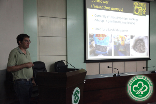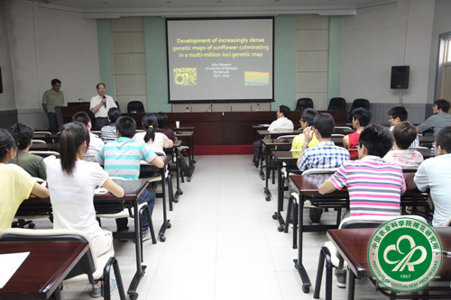 22日上午,在实验室副主任王坤波研究员的主持下,John Bowers教授做了题为“Development of increasingly dense genetic maps of sunflower culminating in a multi-million loci genetic map”的学术报告,并与实验室人员进行了热烈交流,产生了广泛影响。访问期间,John Bowers教授先后参观了国家棉花种质中期库、棉花早熟课题组和棉花种质鉴定课题组实验室等,并和实验室叶武威研究员、杜雄明研究员等就基因组测序、遗传图谱构建、基因克隆等问题进行了深入的讨论。