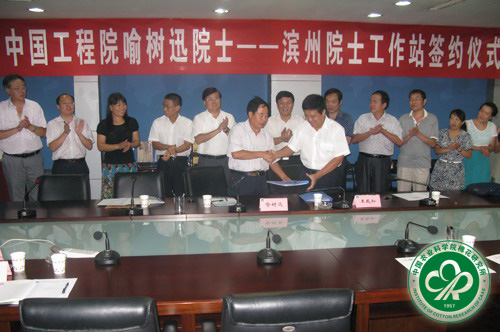 8月22日,山东省滨州市无棣中科现代农业工程有限公司院士工作站签约仪式在我所举行。山东无棣县副县长王殿和与中国工程院院士喻树迅签订了在山东无棣县建立院士工作站的合作协议。山东省滨州市农机局副局长马洪岩、山东无棣县副县长王殿和、滨州市农机局推广站站长陈恩明、无棣县农机局局长郭德武、无棣县科技局副局长杨凤荣,我所所长、党委书记李付广及有关处室领导专家等参加了签约仪式。