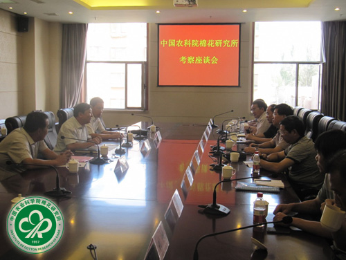 在与各单位座谈会上,李付广所长向各单位多年来对我所的大力支持表示感谢,热忱邀请相关负责人回访我所,以期进一步合作。各单位对我所为新疆棉花产业发展做出的重大贡献给予了充分肯定,希望我所能够在科技、人才和成果转化、产业化等方面加大投入和支持,促进新疆棉花科技创新,做强做优棉花产业。与会各方围绕棉花产业结构调整、科技创新成果的转化、新品种试验示范点的建立、新技术的推广应用等内容相互交换了意见和看法,并在科学研究、基地建设、人才培养、成果转化、产业发展和社会服务等方面达成了多项合作框架协议或意向。
